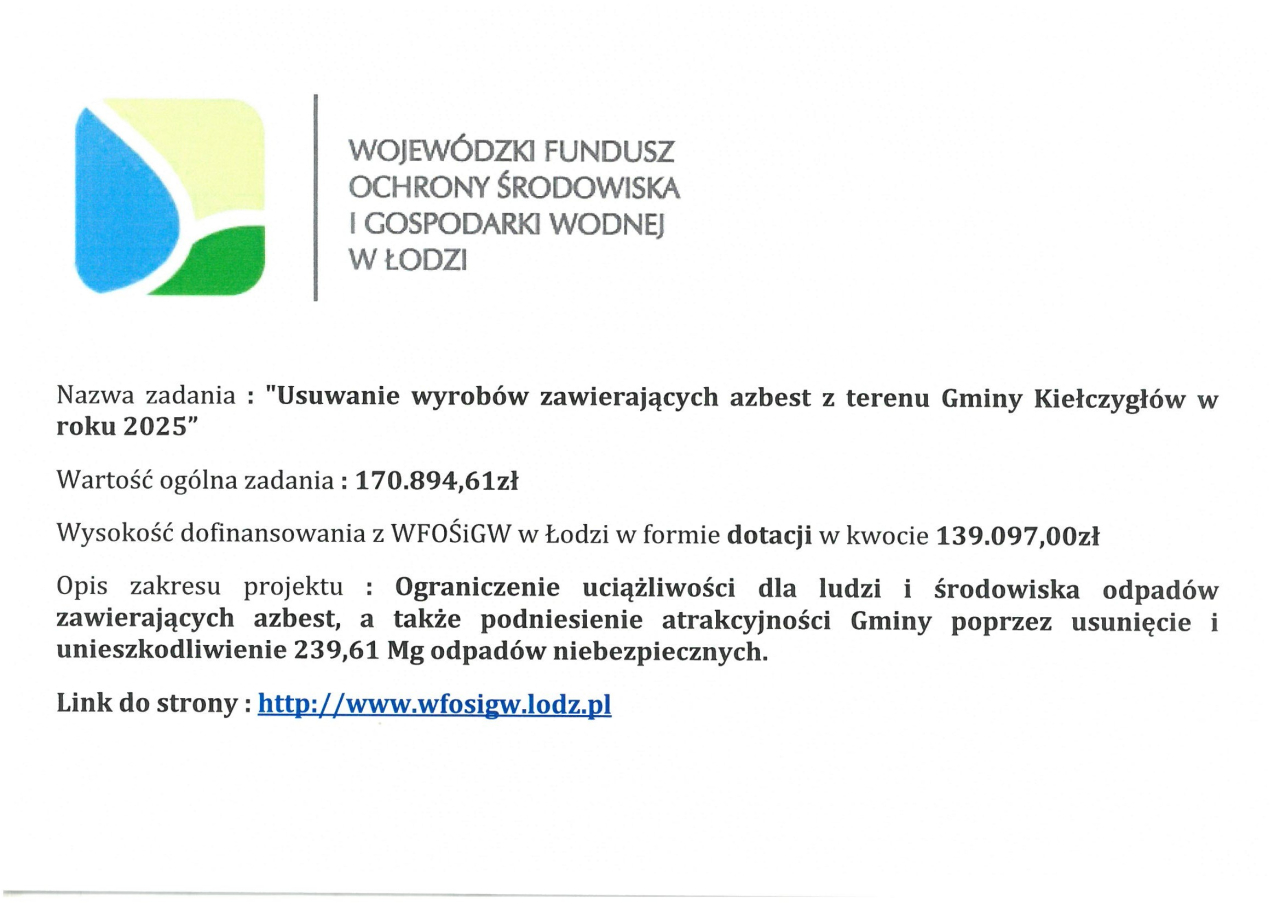 Usunięcie i unieszkodliwienie wyrobów zawierających azbest z terenu Gminy Kiełczygłów w 2025 roku