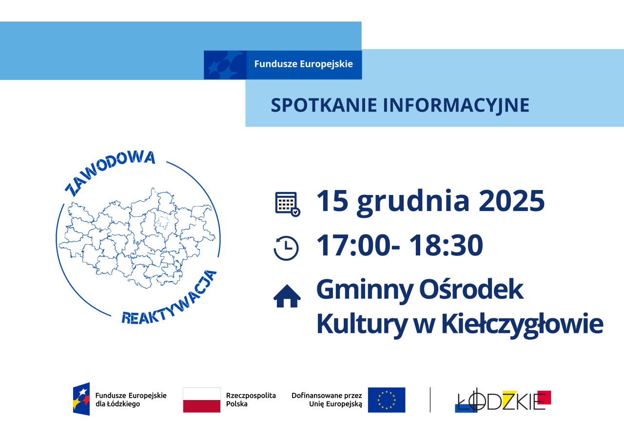 Wójt Gminy Kiełczygłów wraz z Centrum Rozwoju Kompetencji WŁ i PGE w Woli Grzymalinej zapraszają wszystkich mieszkańców na spotkanie informacyjne dotyczące projektu „Zawodowa reaktywacja”.